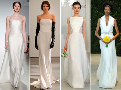 2014春夏纽约婚纱周,整体来看,大多数的品牌2014春夏婚纱系列走着大方简约主义,“婚纱女王”王薇薇 (Vera Wang)就是其中一位 ,简约优雅的婚纱让新娘尽显大方优雅气质。